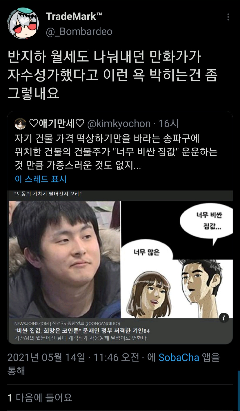 기ì84 ë³µíì ìê²° ë°ì' from blog.kakaocdn.net 그러다가 기안 단편선 망했잖아 ㅋㅋ | 21.05.26 00:17 | 신고 | 17 | 0 댓글 작성 시 타인에 대한 배려와 책임을 담아주세요. 네이버 웹툰 에서 연재 중이며, 2014. 웹툰에서 친구와 애인 캐릭터는 너무 비싼 집값 너무 많은 갈등, 끝도 없는 갈등 코인뿐인 희망 등 사회적으로 확산한 문제점을 꼽으며, 자웅동체인 '달팽이'로 합쳐진다. 자궁근종이나 자궁내막증 등의 자궁 질환은 과거 40~50대 여성에게 발병하는 질환이라 생각했지만 요즘은 많이 달라졌습니다. /네이버웹툰 캡처웹툰 작가 기안84(김희민·37)가 연재 중인 웹툰에서 현 정권의 부동산 정책과 젠더 갈등, 코인 열풍 등을 두루 풍자해 다시 한 번. 웹툰 작가 기안84(본명 김희민·37)가 연재 중인 웹툰에 현 정권에서 확산한 집값 문제와 젠더 갈등, 코인 사태 등에 대해 비꼬는 내용을 담아 또다시. 기안84와 달팽이 인간, 그리고 '이대남'이라는 정체성 위근우의 리플레이 위근우 칼럼니스트 입력 2021. (32) 군대) 부실급식 바꿀 힘은 없지만.